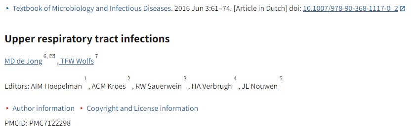 • Upper respiratory tract infections: https://www.ncbi.nlm.nih.gov/pmc/articles/PMC7122298/