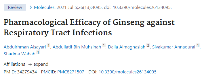 • Pharmacological efficacy of ginseng against respiratory infections: https://www.ncbi.nlm.nih.gov/pmc/articles/PMC8271507/