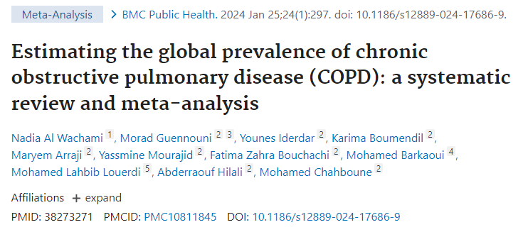 • Estimating the global prevalence of chronic obstructive pulmonary disease (COPD): a systematic review and meta-analysis: https://www.ncbi.nlm.nih.gov/pmc/articles/PMC10811845/