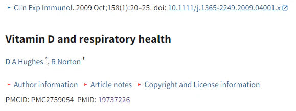 • Vitamin D and respiratory health: https://www.ncbi.nlm.nih.gov/pmc/articles/PMC2759054/